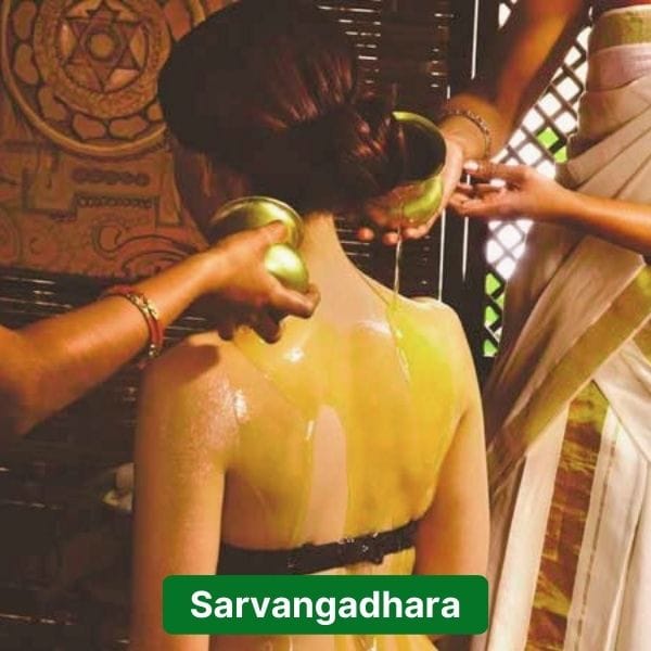 Sarvangadhara is an Ayurvedic therapy in which a warm medicated oil or herbal decoction is poured over the entire body.